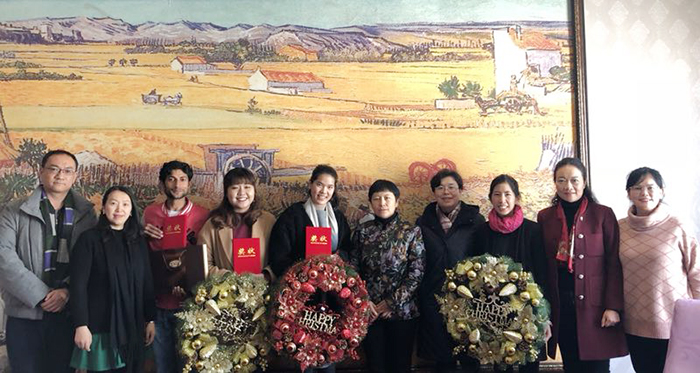 12月 25日,校长黎素梅、副校长熊晶代表学校亲切慰问了在best365任教的6位外籍教师,国际交流合作处副处长陈静及国际处相关人员参加了慰问活动。