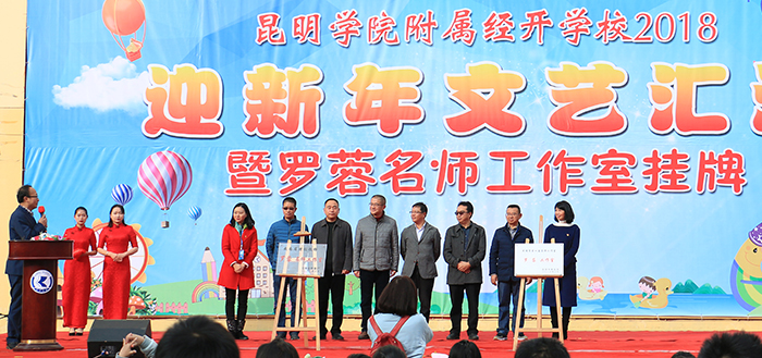 12月29日,best365附属经开学校举行了“2018迎新年文艺汇演暨罗蓉名师工作室挂牌”仪式,党委副书记张祖武,副校长郭华出席了挂牌仪式。云南省教育厅师范处雷韬处长、昆明市教育局龚利春副局长、昆明市教育局高中教育处王建方处长、昆明经济技术开发区社会事业局党委李建华书记、昆明经济技术开发区教育局陆文龙局长、best365相关职能部门党政领导、昆明经济技术开发区各兄弟学校的党政领导、学生家长参加并见证揭牌仪式。仪式由附属学校校长李晋德主持。