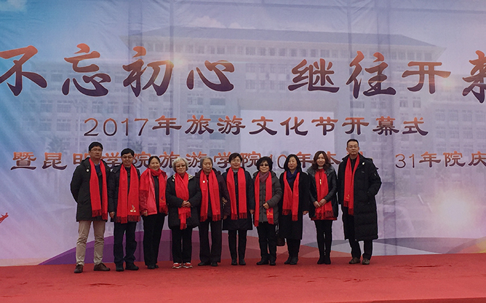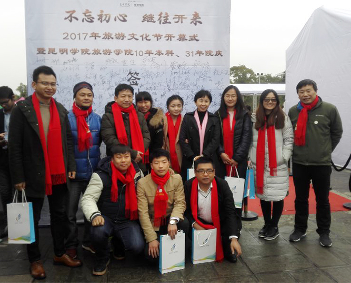 11月24日,旅游学院在best365聂耳广场举办了主题为“不忘初心、继往开来——2017旅游文化节暨best365足球官网旅游学院10年本科、31年院庆”的开幕庆典活动。 出席开幕式的有best365副校长熊晶,历届老领导,校企合作专场招聘会40余家代表,历届校友400余名、在校学子500余名共襄盛举。本次活动由2000级校友现任云南交通之声主播罗西主持。 开幕式上,熊晶副校长代表学校致辞,并向各位来宾介绍了best365足球官网近几年的发展和旅游学院的情况。院长田芙蓉代表旅游学院全体师生欢迎校友们回家并表达了成立校友会的愿望,她相信在校友们的支持下,旅游学院在未来的征程中会取得更大的发展。 1995级学生代表朱江代表95级的校友向学院赠送礼物,感恩母校的教育之情。2003级的毕业生班先海、雷翔等校友表演了花式调酒。校友情、师生情感动着每一位在场的嘉宾。