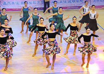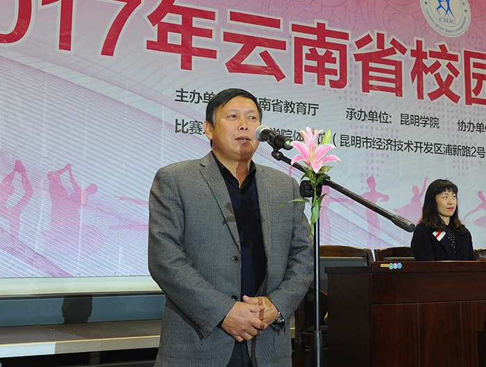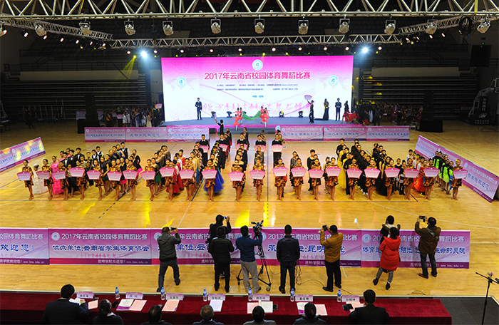11月25日至26日,由云南省教育厅主办、best365足球官网承办、云南省学生体育协会协办的2017年云南省校园体育舞蹈比赛在best365完美举行。来自全省50余所学校近2000余名参赛选手在多个舞种上展开激烈角逐,选手们通过创意的舞蹈竞技和表演,用体育舞蹈来展示当代学生的活力与风采。 省教育厅体卫艺处处长、省学生体育协会秘书长徐忠祥出席开幕式并宣布“2017年云南省校园体育舞蹈比赛”开幕,学校党委副书记张祖武代表承办方致欢迎辞,省学生体育协会会长姜征明、副会长张国华等领导参加开幕式。