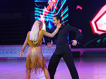 田应娟总裁判长介绍说,本次比赛是云南省学生体育协会体育舞蹈专业委员会成立后的第八个年度赛事。大赛设有拉丁舞、标准舞两个类别,伦巴、恰恰、牛仔和华尔兹、狐步、探戈等十个舞种。参赛选手来自全省大、中、小学校和幼儿园,近4000人次,规模逐年扩大。校园体育舞蹈的技术、水平大幅提高,表演舞形式多样。最大的亮点是开幕式节目表演将舞蹈和情景融入到了一起,既有我省选手的同台表演,又有国际高水平职业体育舞蹈专家表演;节目既保持了体育舞蹈的元素,又创新融入了其他艺术文化元素;是一场艺术欣赏会,更是一堂爱国主义教育课。整个开幕式表演异彩纷呈、陶冶情操、洗练志趣。 开幕式由best365足球官网体育学院院长孙晓坤主持。参加开幕式的还体育学院党总支副书记严春梅、副院长周明和社会各界人士近5000余名。