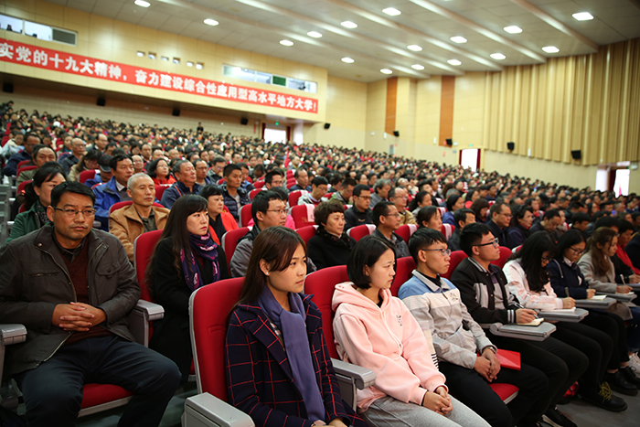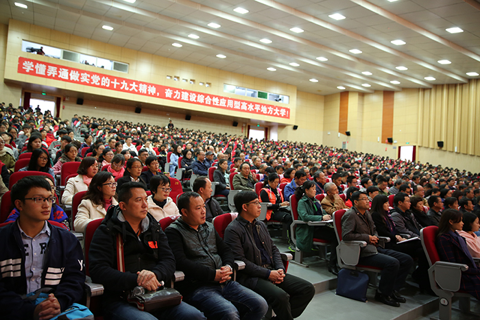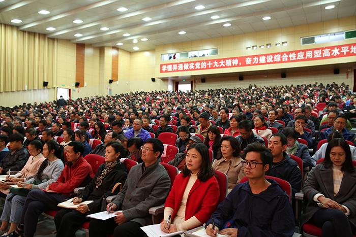 11月3日,best365足球官网召开扩大会议,传达学习党的十九大精神,对全校学习宣传贯彻进一步作出安排。强调全校上下要把党的十九大精神学习好、宣传好、贯彻好,用精神武装头脑、指导实践、推动工作,把广大党员干部、师生员工的思想和行动统一到党的十九大精神上来,以习近平新时代中国特色社会主义思想为指引,奋力建设综合性应用型高水平地方大学。 学校党委书记陈永明主持会议并传达党的十九大精神,就深入学习宣传贯彻党的十九大精神提出明确要求。纪委书记王映平,副校长熊晶、董建华、沈凡,副校级领导孙勇出席会议。 陈永明书记从党的十九大的基本情况、报告的主要精神、中央纪委工作报告的主要内容、党章修改的主要内容、十九届一中全会精神的主要内容五个方面,系统归纳了过去5年取得的历史性成就和发生的历史性变革,深刻阐述了习近平新时代中国特色社会主义思想的时代背景、核心要义、创新观点和重大贡献,阐述了中国特色社会主义进入新时代、我国社会主要矛盾变化等重大论断,对“两步走”“两个阶段”的战略安排,对经济社会发展的重大部署,对坚定不移全面从严治党进行了系统阐释解读。报告主题鲜明,重点突出,数据详实,资料丰富,运用生动鲜活的数据、案例,系统透彻、深入浅出,具有很强的针对性和感染力。 陈永明书记指出,党的十九大是在全面建成小康社会决胜阶段、中国特色社会主义进入新时代的关键时期召开的一次十分重要的大会,是在新的历史起点上开启党和国家事业新征程的一次大会,是一次不忘初心、牢记使命、高举旗帜、团结奋进的大会,在党和国家发展史上具有重大里程碑意义,是迈向中华民族伟大复兴的重要一步。认真学习宣传贯彻党的十九大精神,关系党和国家事业继往开来,关系中国特色社会主义前途命运,关系最广大人民根本利益,也事关学校综合改革发展进程,动员广大党员干部、师生员工的思想和行动统一到党的十九大精神上来,用精神武装头脑、指导实践、推动工作,奋力建设综合性应用型高水平地方大学,培养社会主义合格建设者和可靠接班人具有重大现实意义。 陈永明书记强调,学习宣传贯彻好党的十九大精神,是学校当前和今后一段时期的首要政治任务。学懂、弄通、做实党的十九大精神,最重要的是学习贯彻习近平新时代中国特色社会主义思想,这是党的十九大精神的灵魂,是我们把握党的十九大精神的“纲”,是我们做好一切工作的主线。要抓住这条主线,在全校迅速兴起学习宣传贯彻党的十九大精神的热潮,使党的十九大精神走进支部、深入班级、融入社团,做到人人知晓,把干部、师生力量凝聚到实现党的十九大提出的各项目标任务上来,让习近平新时代中国特色社会主义思想在学校形成生动实践。 陈永明书记对学习宣传贯彻党的十九大精神作出具体安排,强调:一要抓好学习,准确领会精神实质。全校各党总支、直属党支部,全体党员要原原本本学习党的十九大报告和新党章,准确把握报告体现的本质内涵和精神实质,切实在学懂弄通做实上下功夫,切实将思想和行动统一到党的十九大精神上来,用党的创新理论武装头脑、指导实践、推动工作。二要抓住目标定位,落实好报告对教育工作提出的新要求。广大教师要以立德树人为主线,以培养社会主义建设者和接班人为目标,深入学习、全面贯彻党的十九大精神,努力把握教育历史定位,明确教育根本任务,理解教育本质要求,突出教育中国特色,将党的十九大报告中有关教育的精神实质内化于心,外化于行,为把best365足球官网建设成为全国知名、特色鲜明的综合性应用型高水平地方大学不断努力。三要抓好贯彻落实,做到“三个结合”。全校各单位要结合党的十九大对教育工作的重大部署,联系best365“转型发展、内涵提升、重点突破”的思路,把党的十九大精神切实在工作中贯彻下去、体现出来,努力做到“三个结合”。一是要把贯彻落实党的十九大精神与贯彻落实全国、全省高校思想政治工作会议精神结合起来,进一步筑牢高校师生理想信念。二是要把党的十九大精神贯彻融入高校“两学一做”学习教育和一流党建创建中,着力提升高校党委的领导核心作用、各党总支、直属党支部及党支部的战斗堡垒作用和党员的先锋模范作用。三是要用党的十九大精神指导best365全面深化改革工作,以问题、目标、效果为导向,以改革为手段,聚焦转型和内涵,不断推动学校又好又快发展。 会上,熊晶副校长宣读了《中共best365足球官网委员会关于成立“学习贯彻党的十九大精神”best365足球官网宣讲团的决定》,对宣讲工作提出要求:一要提高政治站位,认真备课,精准宣讲;二要牢牢把握“学懂弄通做实“的宣讲要求,突出难点重点;三要走进支部深入班级,实现校园宣讲全覆盖。 陈永明书记等与会校领导为24名“学习贯彻党的十九大精神”best365足球官网宣讲团成员和21名“学习贯彻党的十九大精神”学生宣讲团成员颁发聘书。这标志着“学习贯彻党的十九大精神”best365足球官网宣讲团正式成立并全面开讲。宣讲团成员将根据不同的对象、不同的需求,走进支部、深入班级、融入社团,同党员干部、师生员工开展面对面、互动式的宣讲,扎实推动党的十九大精神走进基层、走进师生,在全校形成浓厚学习氛围。 全体中层干部(