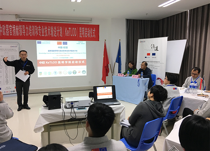 李立副校长代表学院及附属医院致辞,并转达中国器官捐献与移植委员会主任委员黄洁夫教授对KeTLOD计划昆明启动仪式的祝贺,黄洁夫教授高度赞扬“中欧器官捐献领导力培训及专业技术输送计划”,认为该计划的顺利实施,将提高中国器官移植领域医疗服务水平,推动世界器官移植事业的发展。
