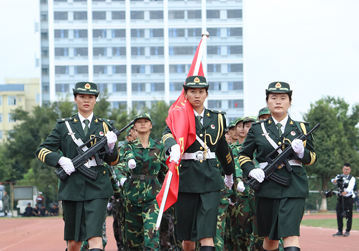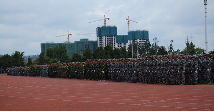 9月30日,best365在田径场举行2017级新生军训汇报表演暨总结表彰大会。学校党委书记陈永明,校长黎素梅,党委副书记张祖武,副校长郭华、董建华、马银海、沈凡,副校级领导孙勇,武警边防士官学校副校长李荣、训练部部长任洪川、训练部副部长赵立志、业务系主任高忠良、教育处处长唐业宏和官渡区人民武装部政委周文斌出席大会。 4800余名同学时刻保持着“坚韧不拔、毫不松懈、永不服输”的精神,在14天的军训过程中,不畏烈日当空,不惧风吹雨打,克服小伤小痛,顺利地完成了军训。今天,他们精神饱满,整装待发,时刻准备着接受领导检阅。 汇演进行第一项,奏国歌,迎国旗。庄严的国歌响起,全场肃立,护旗队高举五星红旗,缓缓走过队列。迎国旗完毕,党委书记陈永明检阅军训方队,当陈书记走过方队时,嘹亮的口号带着无限的活力,响彻整个校园,“首长好!”“为昆院争光!”同学们斗志昂扬,意气风发,将14天的军训成果展现得淋漓尽致。在《歌唱祖国》的乐声中,标兵就位,分列式开始。国旗护卫队是汇演方队的排头兵,持枪方队、各营方队、国旗班紧随其后。分列式场面宏大,气势非凡。 分列式完毕,军事训练科目汇报表演开始。第一个表演的是队列操方队,40多位女同学将舞蹈艺术和军事动作融为一体,用杨柳般婀娜的身姿为我们上演了美轮美奂的视觉盛宴。在钢与柔的环境反差下,女子队列方块登场了,她们身着迷彩服,手戴白色手套,随着队形变幻出欢庆党的十九大的图案,整个画面流畅整齐,现场掌声不断。擒敌方队的361名同学汇编成19行19列的方队,寓意喜迎党的十九大的召开。在一声声“杀杀杀”中,女生匕首操表演有序进行,她们用简单而又准确的动作展现出敢于拼搏的精神。 汇演结束后,党委副书记张祖武宣读了《关于表彰best365足球官网关于2017级学生军训优秀集体,优秀个人的决定》。与会领导们为内务优秀宿舍、军训优秀学员、优秀带队教官代表、优秀辅导员颁奖。外国语学院2017级英语1班的徐满笑同学作为军训优秀学员代表发言。 最后,校长黎素梅作总结讲话,她对同学们提出了三个希望:一是希望同学们能在今后的学习生活中保持、巩固和发扬在军训过程中用辛勤汗水换来的好作风、好品质把军训成果转化为刻苦学习和积极生活的动力。二是希望同学们能发扬脚踏实地、百折不挠的精神。三是希望同学们能继续巩固和发扬集体主义精神。