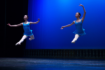 据了解,这是中央芭蕾舞团走进高校的首站演出。本场演出由中央芭蕾舞团大师,总排练者徐刚主导,首席主演张剑,主要演员余波,青年演员李洁,佟锦昇等领衔演出。整个会堂座无虚席,许多同学告诉记者,他们很早就来到了学生会堂外等候,甚至七点演出开始后,仍然有许多同学等在会堂外面,因为座位已全部坐满而失去了观看演出的机会,对此场外的同学们深表遗憾。而会堂内天蓝色的背景墙,芭蕾舞者身着蓝色芭蕾舞裙,在舞台上时而跳跃时而俯身,柔软的身姿轻盈的舞蹈给在场的观众们营造了仙境般的感觉,仿佛行走在云端的蓝色精灵快乐的起舞 ——21位演员用自己精湛的舞姿为大家带来了一场难忘的演出。