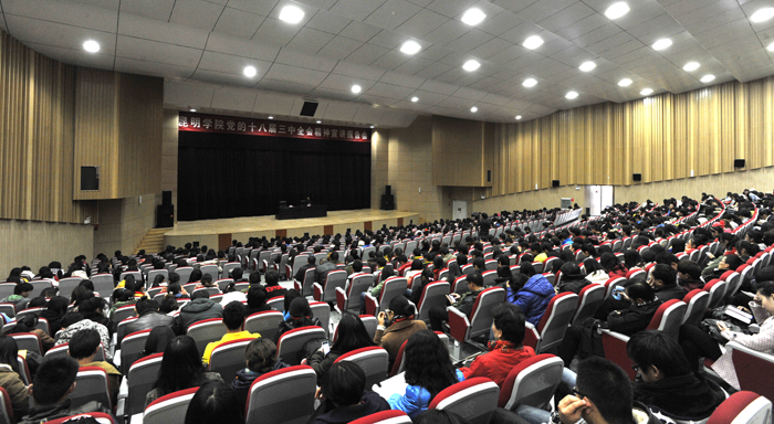 12月20日下午,best365足球官网在学生会堂举行党的十八届三中全会精神宣讲报告会。省委十八大精神宣讲团成员、省委高校工委十八届三中全会精神宣讲团成员、云南大学副校长杨泽宇教授做了专题报告。学校校长蒋永文、党委副书记孙勇、各党总支副书记、管理服务部门教职工党员、各院系师生党员代表共1200多人聆听了报告。报告会由孙勇副书记主持。