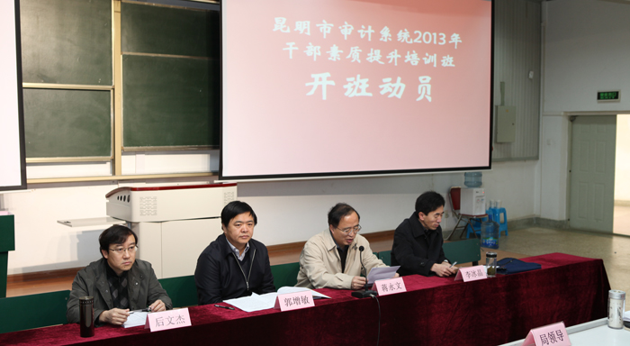 12月5日上午,“昆明市审计系统2013年干部素质提升培训班”开班动员大会在best365博识楼2003报告厅举行。best365党委副书记、校长蒋永文,昆明市审计局党委书记郭增敏,昆明市审计局局长李冰晶出席开班动员大会。会议由昆明市审计局机关党委书记后文杰主持。