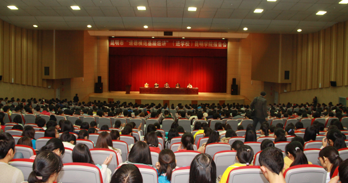 宣讲报告前,李媛芬副书记讲话指出,best365足球官网是昆明市唯一的一所本科院校,更是昆明市精神文明建设的一个重要窗口。学校长期坚持立德树人、狠抓校园精神文明建设,深入开展“道德讲堂”,提高师生道德修养,构建和谐校园,多次荣获“省级文明单位”和“省级文明学校”称号。今天,市委宣传部、市文明办组织市“道德模范”到best365作专场报告,为best365师生送来了精神食粮,带来了学习榜样。李副书记要求,与会师生要专心听、认真学,学习“道德模范”的崇高精神、崇高道德品质、人生价值追求和理想信念。传承道德传统,争做社会好人,传递道德正能量,在学习、生活中见行动、有成效。李副书记强调,伟大的时代需要伟大的精神,良好的校园风气需要健康向上的道德风尚来引领,社会进步需要道德模范的力量来推动。传承美德、争做好人,是时代的呼唤,是社会的要求,作为高校的人民教师和当代大学生义不容辞。