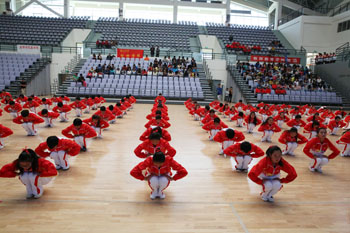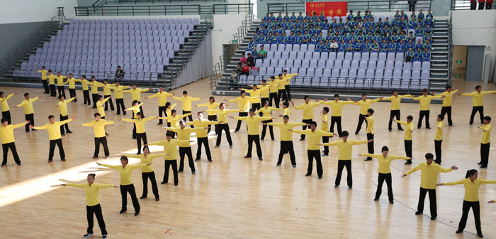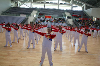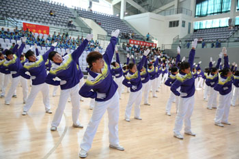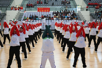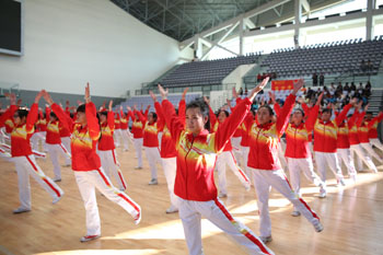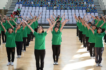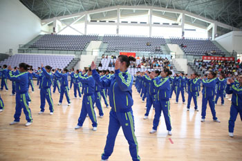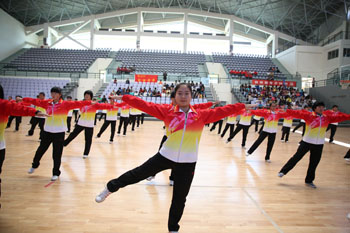 11月8日,以“运动、健康、向上、快乐”为主题的“2013年best365足球官网冬季运动会第九套广播体操比赛”在学校体育中心综合馆成功举行。学校党委副书记孙勇,副校长李翔到场指导。来自18个教学院系代表队近2000余名学生运动员参加比赛,教职工代表队进行了表演展示。