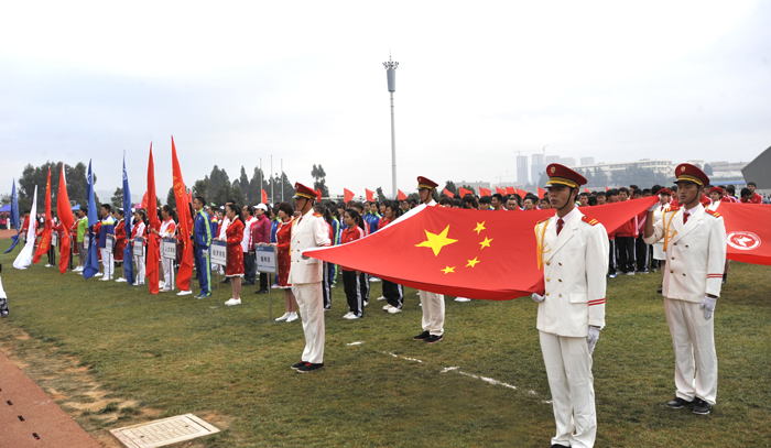 裁判员、运动员和22个师生代表队入场后,全体起立,奏唱中华人民共和国国歌。随后校长蒋永文致开幕辞。
