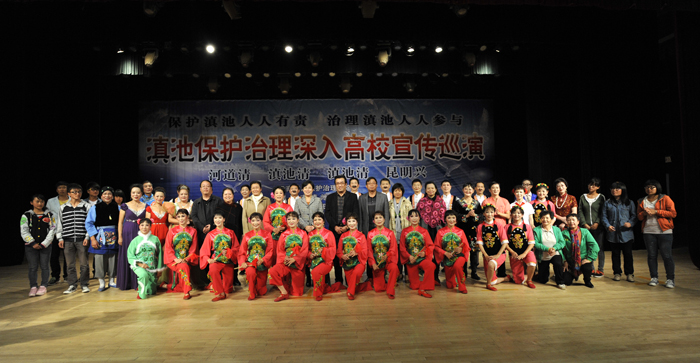 演出中,艺术团把滇池保护治理及生活中的环保知识穿插于每一个节目演出前的介绍中,通过小品与师生的互动,让师生进一步增强保护滇池人人有责,治理滇池人人参与的意识,用自己的一言一行,宣传和感染身边的人们,以实际行动,积极投入到滇池的保护与治理工作中,为我们美丽的母亲湖、为美丽的昆明做出应有的一份贡献。