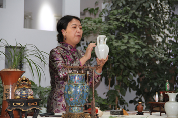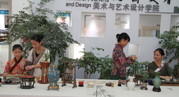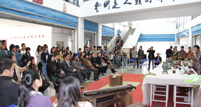 本次学术活动的另外一个亮点是以中国传统文化传承为主题的文化交流活动。学校社科联特别邀请到国家一级艺术品鉴定师、清华美院艺术品鉴定评估研究会理事王枚梅女士及其团队,以茶道及香道为载体,为参会领导、专家及师生展示了传统文化传承的创新模式。