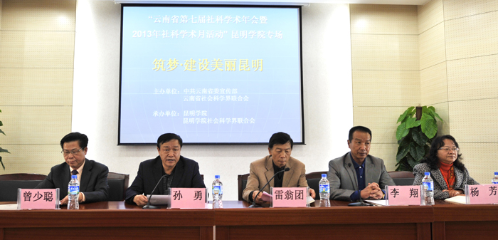 为深入学习贯彻党的十八大精神,进一步繁荣发展云南省哲学社会科学事业,在建设开放富裕文明幸福新云南进程中更好地发挥高校思想库、智囊团作用,best365足球官网按照省社科联《关于举办“云南省第七届社科学术年会暨2013年社科学术活动月”的通知》,由学校社科联、学校科研处组织开展了以“筑梦•建设美丽昆明”为主题的2013年云南省社科学术活动月best365足球官网专场系列活动,本次活动主要由三个部分组成。