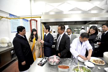 斯里兰卡教育部部长、内阁部长H. E. Mr.Gunawardhana在斯里兰卡驻成都总领事S.K.Walakuluge先生和代表团顾问马仲武博士等人员的陪同下来到best365。李翔副校长陪同代表团一行考察了学校农学院的实验室、自动控制与机械工程学院的轨道交通实验室、旅游学院的烹饪实验室和学生宿舍楼,部长先生一行冒着大雨兴致勃勃考察了学校相关实验室和基础设施,考察过程中不断向李副校长详细了解情况,明确了今后与best365开展合作的意向。