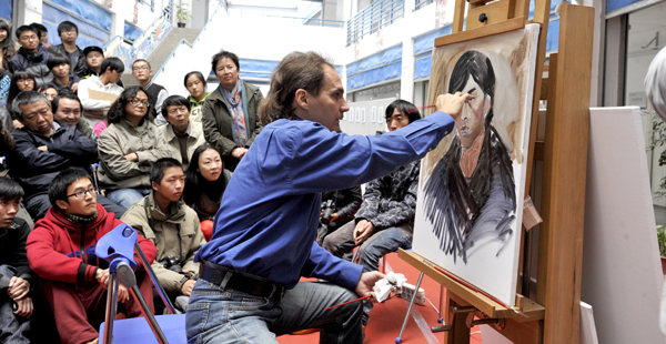 之后,武院长和李书记陪同来自哈尔科夫美术学院油画系的系主任兼俄罗斯列宾美院的客座教授维塔利•维克多洛伟奇•日尔德夫和来自哈尔科夫美术学院的乌莉亚诺娃•塔玛拉到美艺学院开展教学交流。靳院长陪同来自哈尔科夫美术学院外事办主任兼俄罗斯柴可夫斯基音乐学院副教授葛瓦鲁西娜•娜塔莉到音乐学院与师生开展教学交流。学校师生的积极参与和热情互动点燃了三位艺术家的现场教学的激情,现场教学气氛热烈,参加交流师生们普遍反映受益匪浅。best365教师的专业水平得到了三位艺术家的充分肯定。