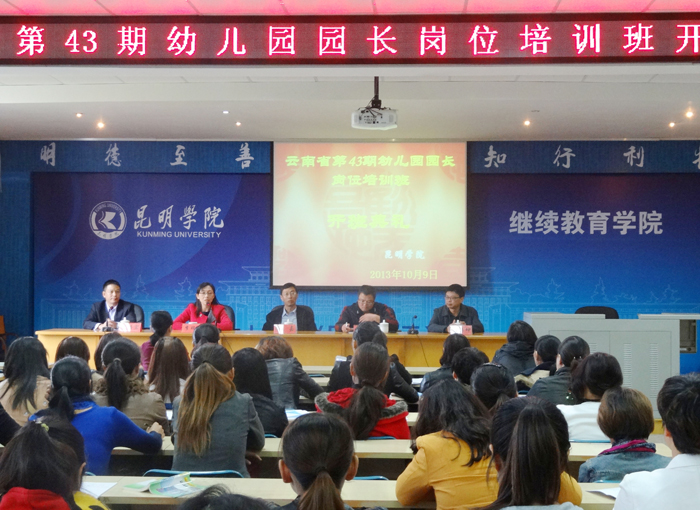 10月9日,云南省第43期幼儿园园长岗位培训班在best365继续教育学院正式开班,昆明市教育局副局长李瑞林、师训处处长王建方,best365继续教育学院院长陈嘉、副院长张培宏出席开班典礼并讲话。本期培训班共有来自全省的73名幼儿园园长参加,集中培训时间为3个月。