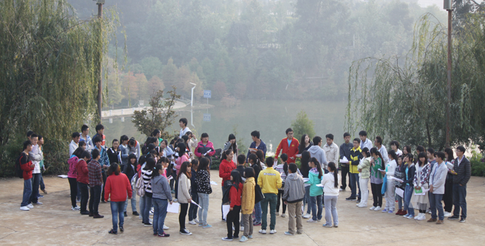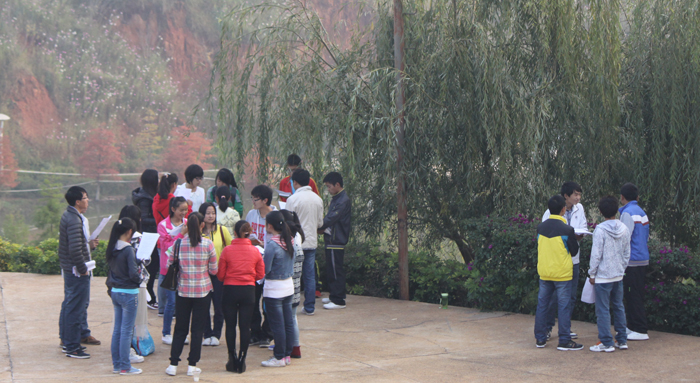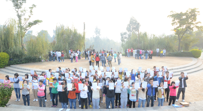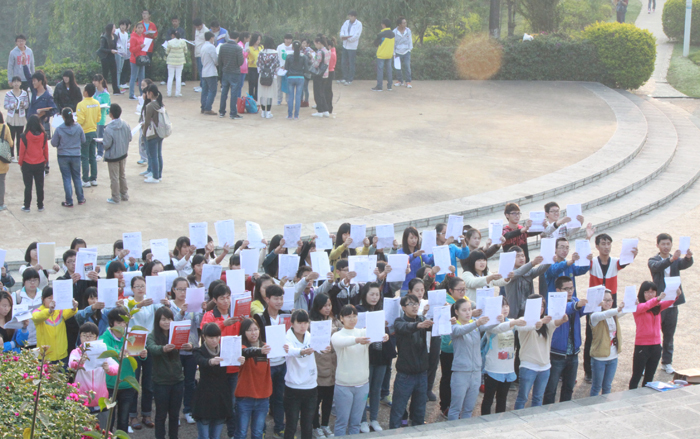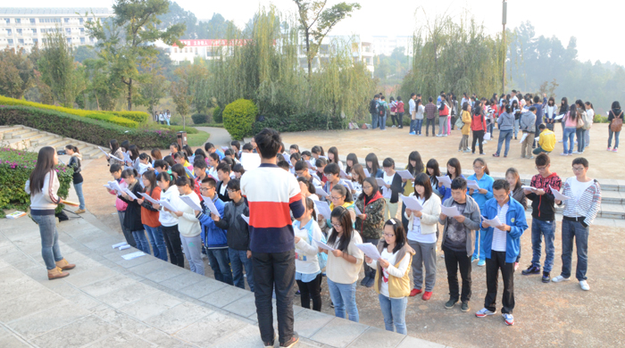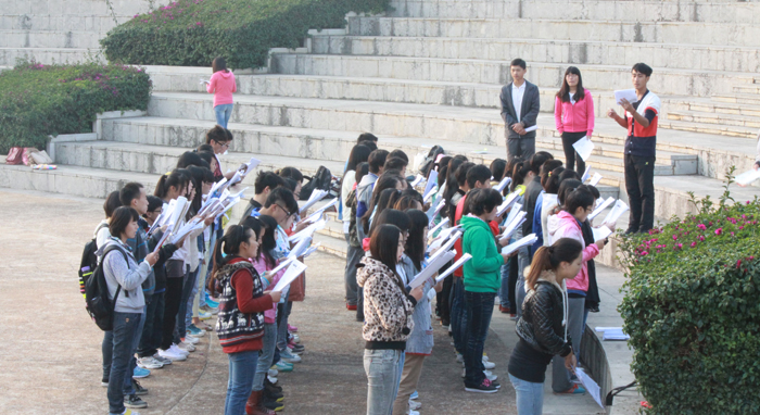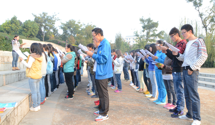 还未走近听心湖,一阵琅琅读书声便传入耳。记者上前打探,这是best365足球官网的“希望部落英语协会”和“晨读社”两个社团正在晨读。据负责的熊剑杰和冯明贵两位同学介绍,两个社团分别在早晨的6点40和7点10分开始晨读活动,最早的同学甚至还有6点10分就到这里开始读书。每天聚在听心湖畔的学生人数大概是140人左右,而且随着许多周边单独晨读的同学和慕名而来的同学的加入,晨读的队伍还在不断地扩大。
