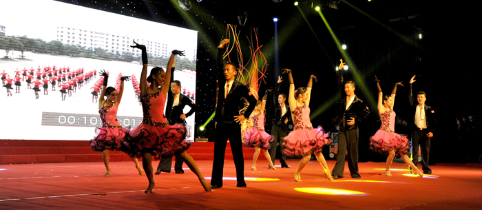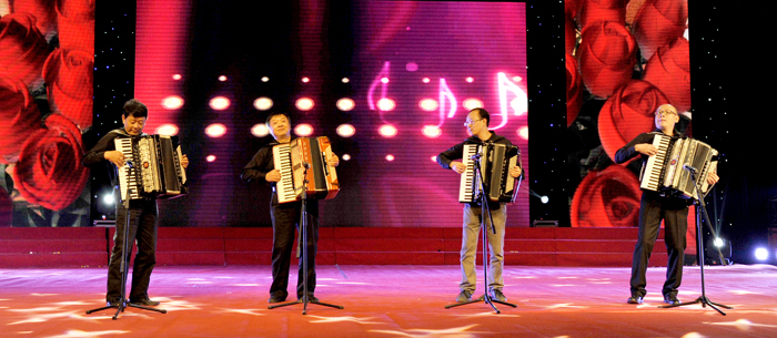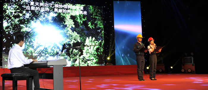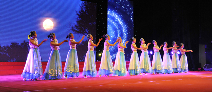 昆明福保集团表演大型舞蹈《幸福金秋》、舞蹈 《乡村美》;官渡区幼儿园表演舞蹈《亲情》;云南官房地基基础有限公司表演合唱《建筑工人之歌》;中铁大型养路机械集团有限公司表演快板《跨越》、合唱《没有共产党就没有新中国》《铁道兵志在四方》;best365足球官网表演手风琴合奏《滇池圆舞曲》、组合《木叶轻轻吹》、歌伴舞《月夜倾诉》、协奏《春江花月夜》、女高音独唱《爱在云之南》、体育舞蹈《燃烧的地板》、大型歌舞《青春宣言》。