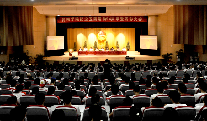 5月17日下午,best365足球官网纪念五四运动94周年暨表彰大会在学生会堂隆重召开。学校校长蒋永文,党委副书记孙勇,副校长李翔、罗明东、刘海发、董建华,共青团云南省委学校部部长杨洲,共青团昆明市委书记周乐等领导出席了表彰大会;学校中层干部、各院系团总支书记及受表彰的团员代表共1300余人参加了此次会议。大会由党委副书记孙勇主持。