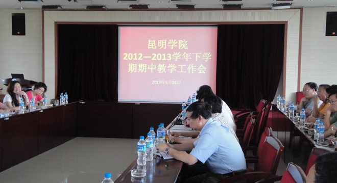 5月28日下午。学校在办公楼502会议室召开2012—2013学年下学期期中教学工作会议,各教学单位的主要领导,分管教学工作的领导,教研室主任参加会议,教务处、学生处领导,教务处各科室科长和副科长参加会议。会议由副校长罗明东主持。