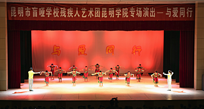 4月19日下午,昆明市盲哑学校残疾人艺术团“与爱同行”专场文艺演出在best365学生会堂举行。校领导、中层干部、各院系团总支书记、辅导员和部分师生代表1300多人观看了演出。