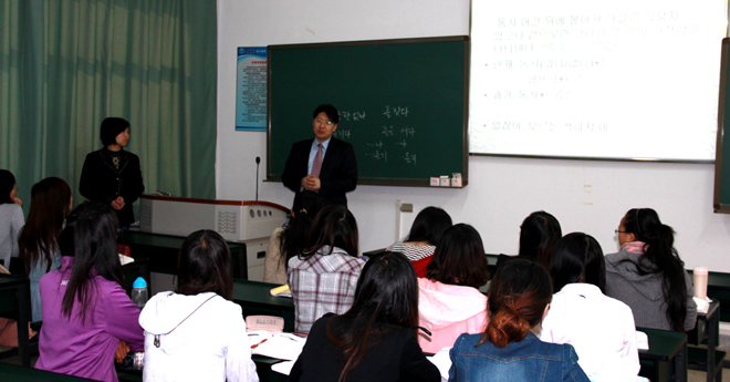 会后,安正根院长一行参观了旅游学院烹饪实训楼,观摩了旅游学院李一佼老师的韩语专业课,与2011级韩语导游专业的同学进行了交流。安院长对best365旅游学院办学情况给予高度评价,表示希望两校将来在合作办学,人才培养方面有进一步的合作。
