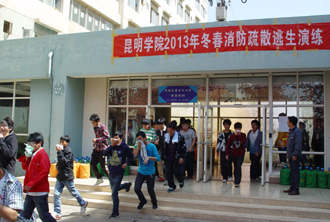 3月12日中午,保卫处和后勤集团联合在澄明苑7、8幢学生宿舍开展了2013年春季消防应急疏散演练。400多名学生在疏散引导员的指挥下安全疏散。随后宿管人员和保安分别进行了灭火器火盆灭火和消防水带灭火的实战演练。经开区消防大队领导到场观摩并指导。
