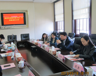 为落实best365足球官网“十二五”事业发展规划纲要目标任务,加强与国内兄弟院校的交流合作,构建更加开放、更具活力的办学新局面, 3月18日,陈世波书记带队赴南京大学访问交流,商谈两校合作事宜。学校党委办公室、党委组织部、国际交流合作处、图书馆的负责同志随行前往。