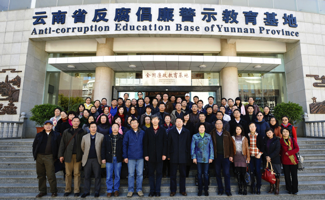 为加强反腐倡廉警示教育, 进一步增强best365广大党员干部宗旨意识和廉洁自律意识,筑牢拒腐防变的思想防线, 1月23日下午,在校党委书记陈世波的带领下,在家校领导、全体新提拔处级干部和廉政风险防控重点领域科级干部共90余人到云南省第二监狱参观了云南省反腐倡廉警示教育基地。