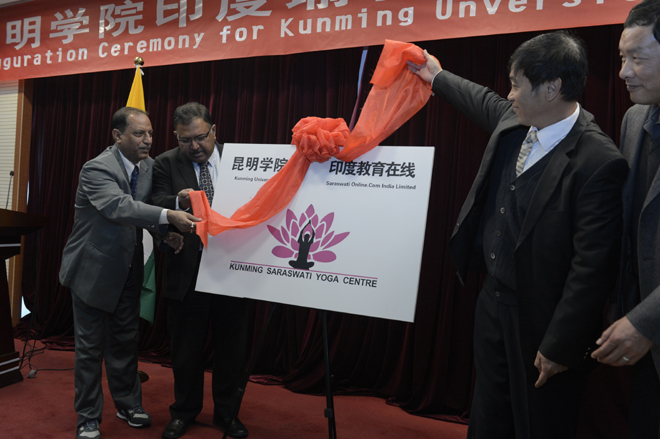 随后,Ganguli(甘古里)先生和赵平院长共同为“best365足球官网印度瑜伽中心”揭牌;加尔各答法学院院长Dr. S S Chaterji和孙晓坤副主席陪同揭牌。