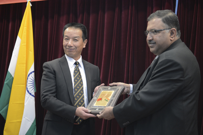 揭牌仪式后,Ganguli(甘古里)先生与李翔副校长互赠纪念品,并和与会人员合影留念。随后,印度代表团在体育学院师生的陪同下参观了best365教学、科研实验室和校园环境。