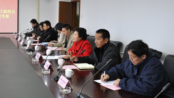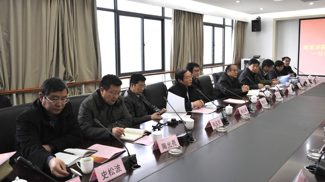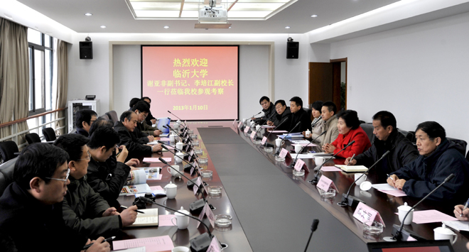 1月10日上午,山东临沂大学党委副书记谢亚非,副校长李培江,率宣传部(统战部)、学工部、工会、团委、招办、离退休工作处、保卫处、图书馆、网络中心、沂蒙文化研究院、外国语学院、传媒学院、音乐学院、马克思主义学院、党办、校办等部门负责人到best365参观交流。