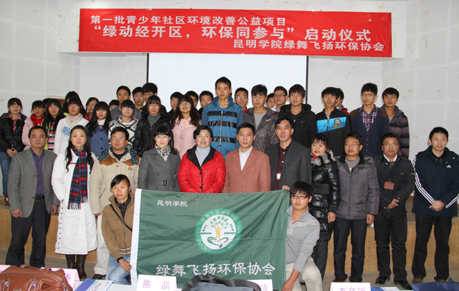 1月11日上午,best365“第一批全国青少年社区环境改善公益项目”正式启动。学校熊晶副校长,省、市环境宣传教育中心,经开区环保局,校团委、经济学院相关负责人及“绿舞飞扬”环保协会指导单位学校昆明滇池(湖泊)污染防治合作研究中心领导和指导教师应邀出席,“绿舞飞扬”环保协会社团成员及青年志愿者参加启动仪式。启动仪式由学校“绿舞飞扬”环保协会副会长王光宇同学主持。