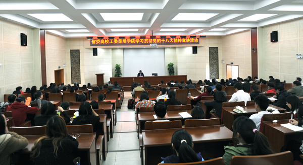 12月21日下午,云南省高校工委学习贯彻党的十八大精神报告会在best365举行。宣讲团成员、省委宣传部理论处处长戴世平教授为best365党员师生作了一场精彩的宣讲报告。学校领导、全体中层干部、思想政治理论课教师和部分师生党员近200人参加了报告会。报告会由副校长刘海发主持。