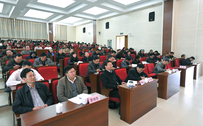 戴世平处长首先从党的十八大召开的历史性意义出发,分别从五个方面宣讲了党的十八大精神和内容,深入阐明了党的十八大的鲜明主题和历史性贡献,深入阐释了党和国家过去10年的重大成就和科学发展观的历史地位,深入论述了中国特色社会主义这条突出主线的丰富内涵和在新的历史条件下夺取中国特色社会主义新胜利的基本要求,系统讲解了全面建成小康社会和全面深化改革开放的总体目标以及全面落实经济建设、政治建设、文化建设、社会建设、生态文明建设“五位一体”总体布局与重大举措,全面阐释了提高党的建设科学化水平的任务和要求。最后,戴处长对高校学习贯彻党的十八大精神提出了建议,一是学习党的十八大精神要全面准确,二是领导干部要带头发挥示范作用,三是在学习宣传研究与贯彻党的十八大精神过程中要深入调查研究,四是学习要与工作相结合。