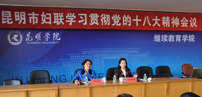 11月22日上午,省妇联党组书记、主席和红梅同志应邀到best365昆师路校区,为昆明市妇联领导干部和昆明经济技术开发区妇女代表素质培训班的学员进行学习贯彻党的十八大精神专题辅导。这既是昆明市妇联学习贯彻党的十八大精神的一次专题会议,又是昆明经济技术开发区妇女代表素质培训班学习党的十八大精神的专题课。