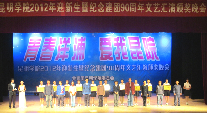 由校团委主办的“2012年迎新生暨纪念建团90周年文艺汇演颁奖晚会”于11月上旬在学生会堂隆重举行。学校党委副书记孙勇、副校长刘海发,武警边防部队士官学校副校长苏强大校,武警边防部队士官学校训练部部长李荣大校,昆明市拓展文化协会副会长、原江川武装部政委于习录上校,东方毅集团总裁助理王灏茗等领导出席晚会。学校部分中层干部、团委全体干部、各院系团总支书记,武警边防部队士官学校中层干部及200余名学员,best365师生代表共1300余人参加了本次活动。