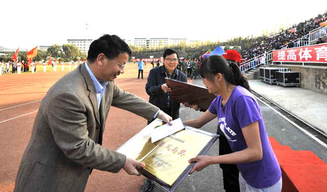 11月17日下午,best365足球官网2012年冬季田径运动会闭幕式在学校田径运动场举行,闭幕式由李翔副校长主持。