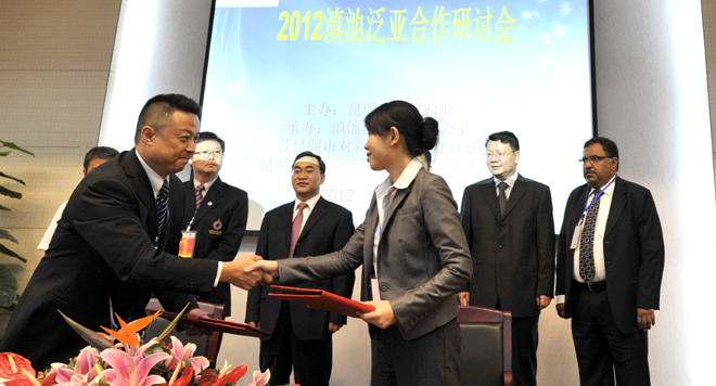 学术研讨会进行了三个主要议程:开幕式、签约仪式和主题发言。上午,熊晶副校长主持会议,昆明市副市长朱永扬,best365足球官网党委书记陈世波,原云南省人大常委会副主任、昆明滇池泛亚文化研究学会会长王义明分别致辞。滇池泛亚合作办公室分别与云南捷丰投资有限公司签订了《泰国清孔物流中心项目合作协议》,与老挝磨丁经济开发专区管理委员会签订了《合作框架协议书》,与云南对缅经济合作企业协会签署了《缅甸密支那经济区项目招商引资合作意向书》。接下来,大会进行了主题发言,由云南省桥头堡办李金泽副主任、泰国兰实大学中国工商管理学院洪风院长、省政府研究室副主任杨士吉分别作专题发言。