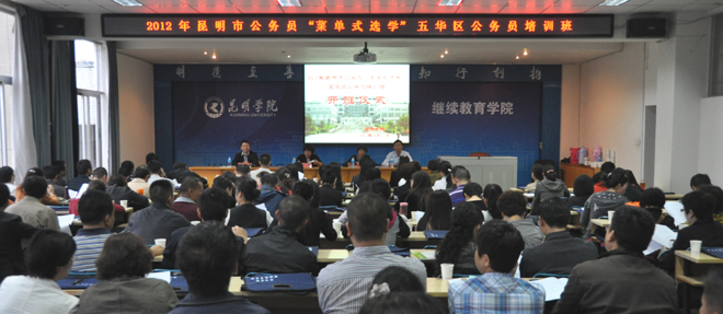 经best365继续教育学院的精心准备和积极申报,best365和云南大学、云南财经大学3所高校被确定为2012年昆明市公务员“菜单式选学”培训承办单位。除五华区公务员培训外,在接下来近两个月的时间内,best365还将承担来自昆明市财政局、石林县等部门和县区的400余名公务员的培训工作。