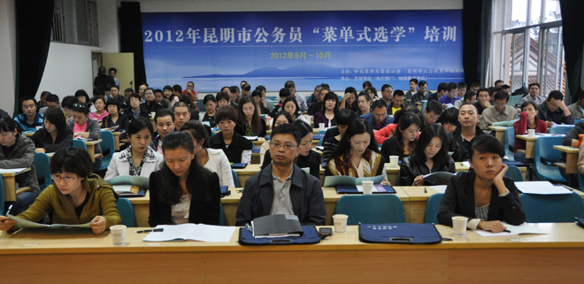 开展公务员“菜单式选学”培训,是贯彻落实中共昆明市委十届二次全会关于大规模培训干部的要求的重要举措,旨在创新干部培训模式,切实提高干部培训质量,努力建设一支高素质的干部队伍。昆明市公务员“菜单式选学”培训的承办单位由中共昆明市委组织部与昆明市人力资源和社会保障局根据每年确定的培训主题以公开招标的方式遴选确定。培训采取“菜单式选学”的方式,即围绕年度培训主题确定该年培训学习的专题内容,其中:综合部门的公务员重点接受综合管理知识培训,行政执法部门的公务员重点接受行政执法知识培训。在各培训机构的课程“菜单”公布后,由全市公务员根据自身实际需要选择学习专题和培训院校。