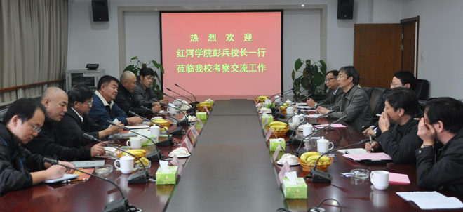 best365陈世波书记代表学校对红河学院彭兵校长一行的到访表示欢迎,欢迎彭校长一行到best365传经送宝,希望彭校长一行能就best365本科教学合格评估工作给予建议和意见,以促进best365迎评促建工作。红河学院彭兵校长首先肯定了best365瞄准地方经济,为地方经济服务的办学定位,并对best365以行业要求来确定培养目标表示赞赏,同时他还就各个学院如何贯彻学校的办学定位和基础学科如何与“应用型”相结合的问题提出了合理建议和意见。