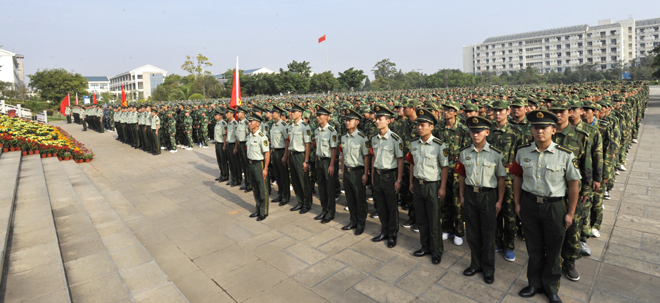 9月4日上午,best3652012级学生军训动员大会在聂耳广场举行。武警边防部队士官学校训练部部长李荣,学生军训团团长陈应海、副团长申仕兵,继续教育处处长孙利辉,信息技术系主任赵立志,学校党委副书记、国防教育委员会主任孙勇,副校长、国防教育委员会副主任李翔,学校国防教育委员会全体成员,各院(系)主管学生工作领导,带队辅导员、全体承训官兵和2012级4600余名参训同学参加了动员大会。大会由副校长李翔主持。