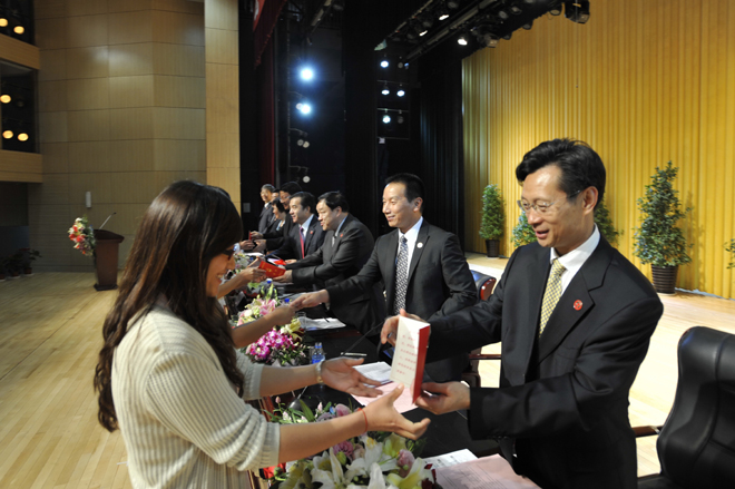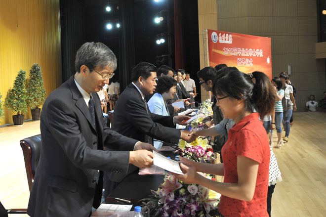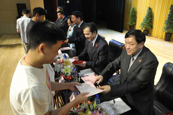 首先,李翔副校长宣读《best365足球官网关于对2011~2012学年省级三好学生、优秀学生干部、先进班集体进行表彰的决定》和《best365足球官网关于对2012届省级优秀毕业生、校级优秀毕业生进行表彰的决定》。76名省级三好学生、22名省级优秀学生干部、9个省级先进班集体;196名省级优秀毕业生,593名校级优秀毕业生受到了表彰和奖励。与会校领导分别为获奖个人和集体颁发荣誉证书。