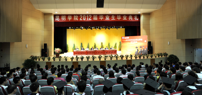 典礼上,梁晓谷书记代表学校致辞。梁书记首先向学业有成的2012届毕业生们表示最热烈的祝贺!梁书记用长者慈祥、深情的话语与同学们一起回忆了一路走来春华秋实三四载、听心湖畔三四年的岁岁月月,感念同学们与学校同成长的点点滴滴;回味着大学生活的每一精彩片段——第一次走进新校园的踏实与宽慰,师生伫立聂耳广场、高唱激昂的国歌、注目庄严的国旗冉冉升起时,心中涌动的激情和眼眶里几欲滴落的热泪,分享着成功、收获的喜悦。