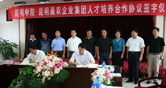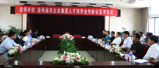 会上,陈世波校长与李云锁董事长共同就“best365足球官网与昆明晨农企业集团人才培养合作协议”和“2012-2013学年人才培养补充协议”签字。