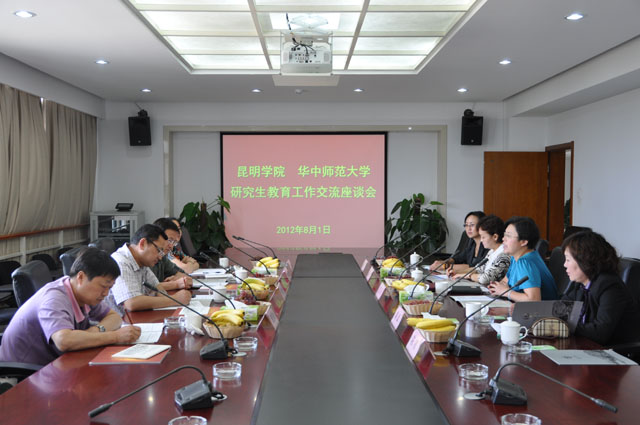 座谈会上,熊晶副校长首先介绍了best365足球官网2008年以来的跨越式发展,重点对学校“十二五”硕士点建设学科及四个研究平台的研究现状及发展构想进行了阐释。王恩科副校长也对华中师范大学进行了介绍,华中师范大学是教育部直属的重点综合性师范大学,国家“211工程”重点建设高校,国家“985”优势学科创新平台建设高校,国家首批批准的专业学位授予单位之一。在了解best365足球官网的学科设置、学位点建设等情况后,王副校长认为华中师范大学与best365足球官网互补性强,为了促成中、西部院校的协同创新,共同提升院校内涵建设能力,两校之间可先签订框架性合作协议,正式搭建起校际合作关系。进而可在师资培训(含教师学历提升、硕导资格认定)、本科毕业生考研、农村调研基地、滇池水污染治理等四个方面签订具有可行性的具体合作协议,将两校的合作落到实处。