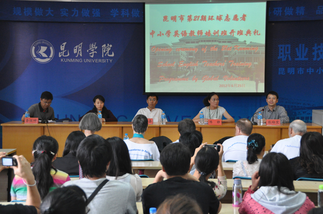 美国“环球志愿者”组织受昆明市人民政府的邀请,自2005年6月起,先后20次组织志愿者到昆明市开展中小学、幼儿园英语教师培训。志愿者培训理念先进、方法新颖、经验丰富、态度热情。该项目在昆明开展7年来,已有1556名英语教师从中受益,对昆明市中小学英语教师队伍建设发挥了较大的作用。