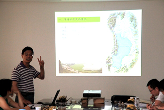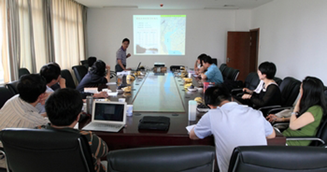 沙龙由昆明滇池(湖泊)污染防治合作研究中心办公室主任钱春萍副教授主持,她首先对韩亚平所长的到来表示欢迎。韩亚平所长做了题为“Material Balance Calculation of Pollutant in Caohai 2011”的报告。他首先就滇池草海的地理位置、区域划分、草海水污染等滇池草海基本情况进行了概述,接着分析估算了2011年滇池草海进出水量及污染物,并介绍了2011年滇池草海 “水葫芦治污项目”的实施情况。随后,与会人员就滇池治理相关问题进行了讨论,一致认为滇池等富营养化湖泊的污染治理是世界性难题,也是一项综合性的、 长期性的任务,滇池治理任重而道远。