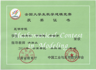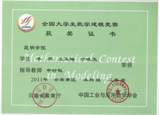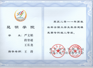 近日,2011年“高教社”杯全国大学生数学建模竞赛组委会公布了竞赛的获奖名次。best365信息技术学院学生取得国家二等奖、云南赛区一等奖和二等奖各1项的优异成绩